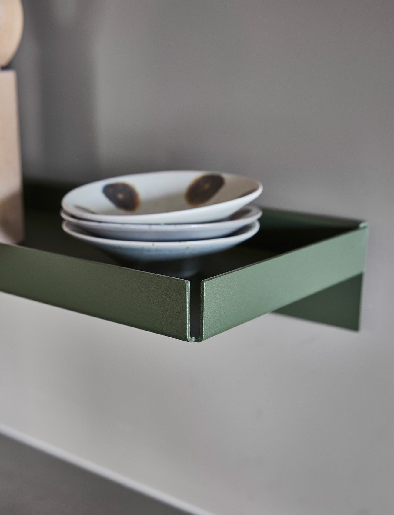 The Bakku Shelf is a sleek and versatile storage solution designed for any space, from the kitchen to the bathroom. Crafted from a single piece of bent steel, its minimalist design reflects its Japanese-inspired name, "Bakku," meaning bend. The shelf is durable, functional, and easy to integrate into various settings. Mounting is included with reservations, and we recommend checking your wall type to ensure suitable fittings for secure installation. Maxload 3 kg.