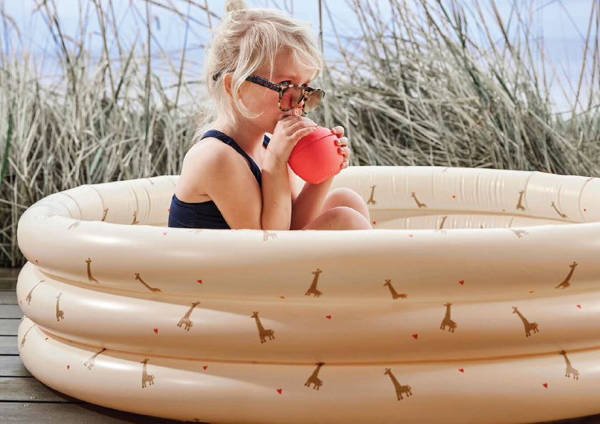 The Giraffe Swimming Pool Small & Beach Ball will be your go-to for cooling down in the summer heat. Crafted from 100% PVC, this inflatable pool and beach ball combo offers a refreshing escape. Adorned with the well-known OYOY print and characters, it adds a touch of whimsy to your summer fun.