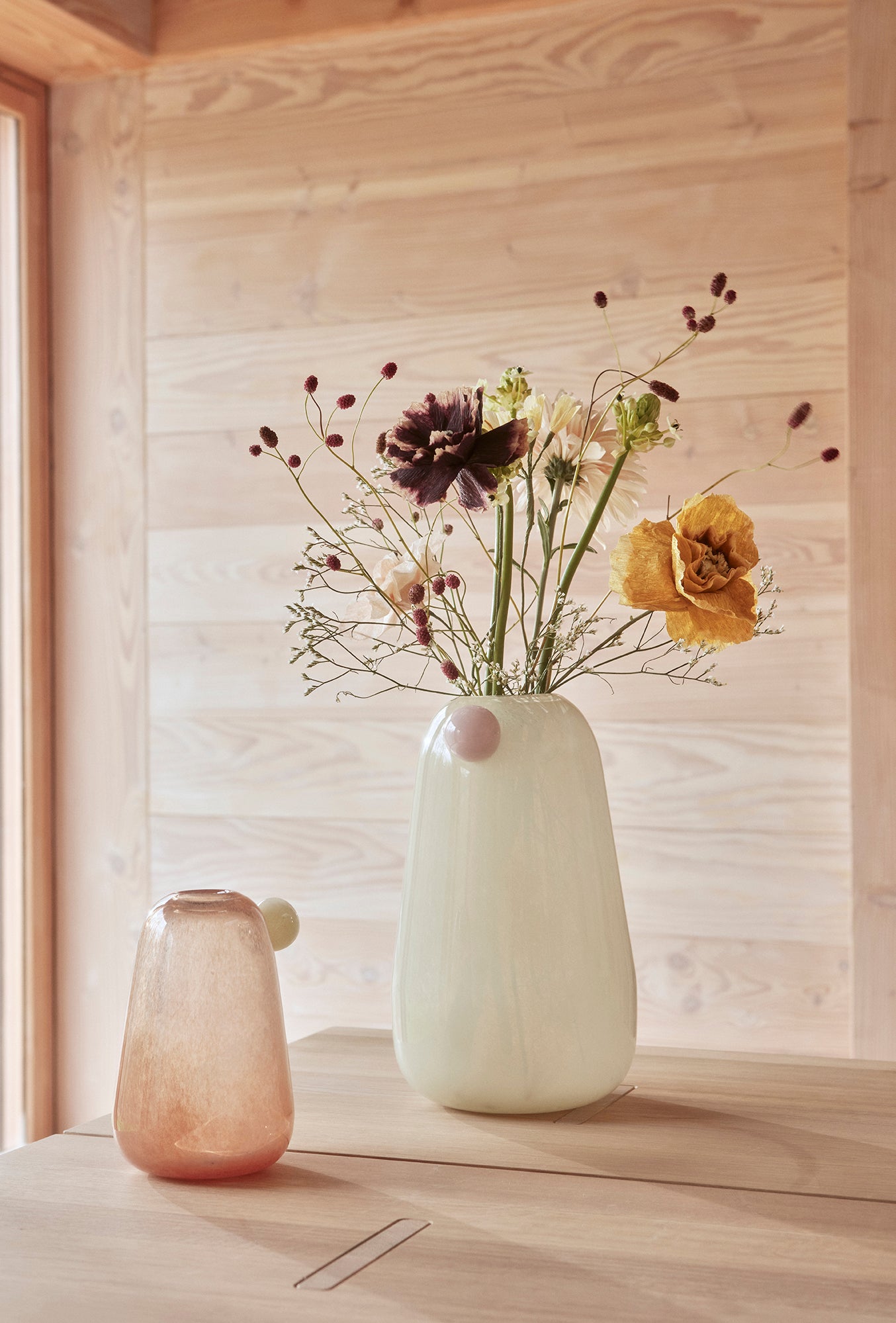 The mouthblown Inka Vase in vanilla has a simple and elegant expression, which fits perfectly into all types of homes. With its Colored glass, the vase will in combination with your favourite flowers and branches adorn the home. The large vase is an addition to the well-known Inka series, which is characterized by its round, unique handles.The vase is mouthblown and turned by hand. The Inka Vase is available in more Colors.Style no. L300432 Color: Vanilla Material: 100% Glass Dimensions: Ø20 x H34 cm