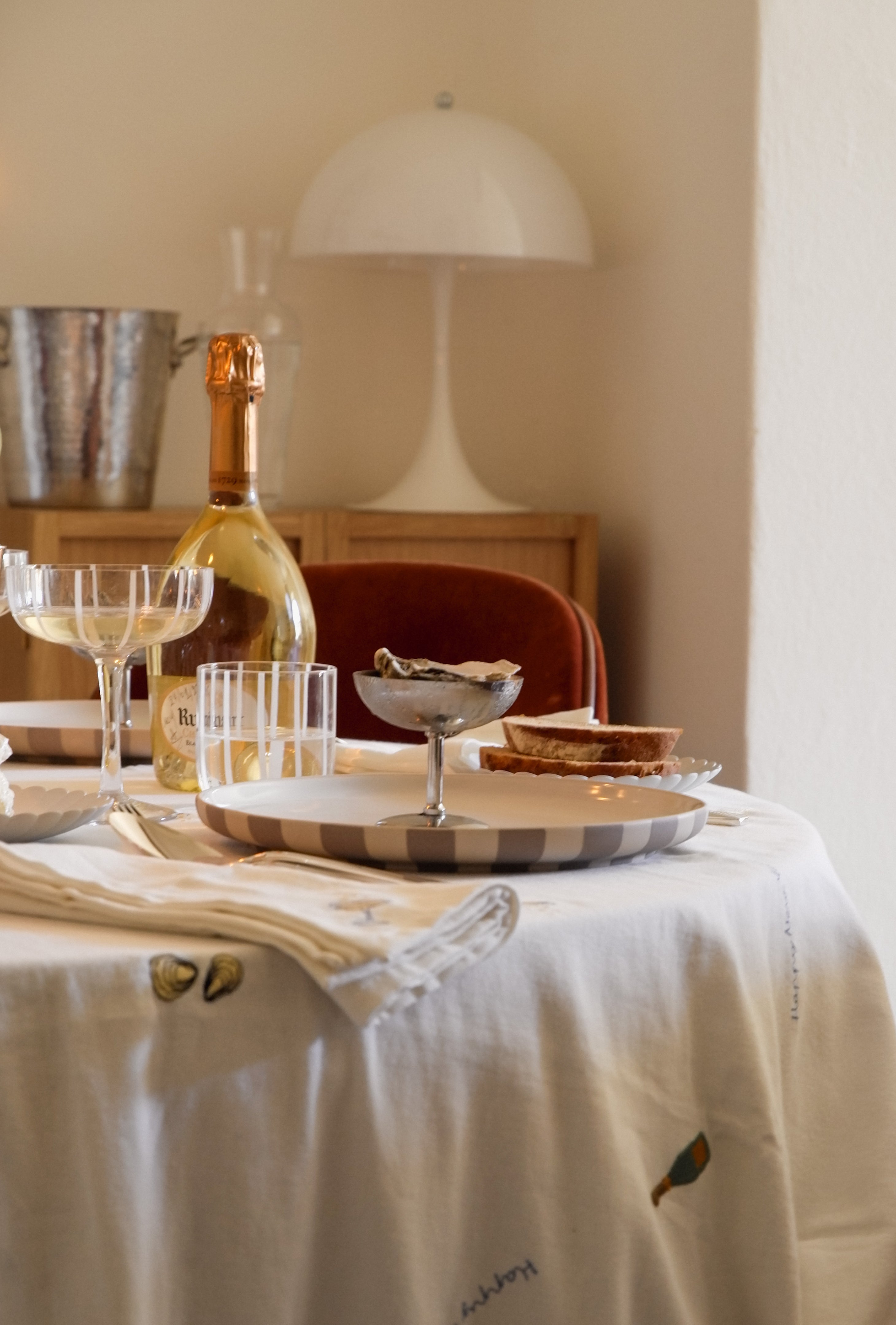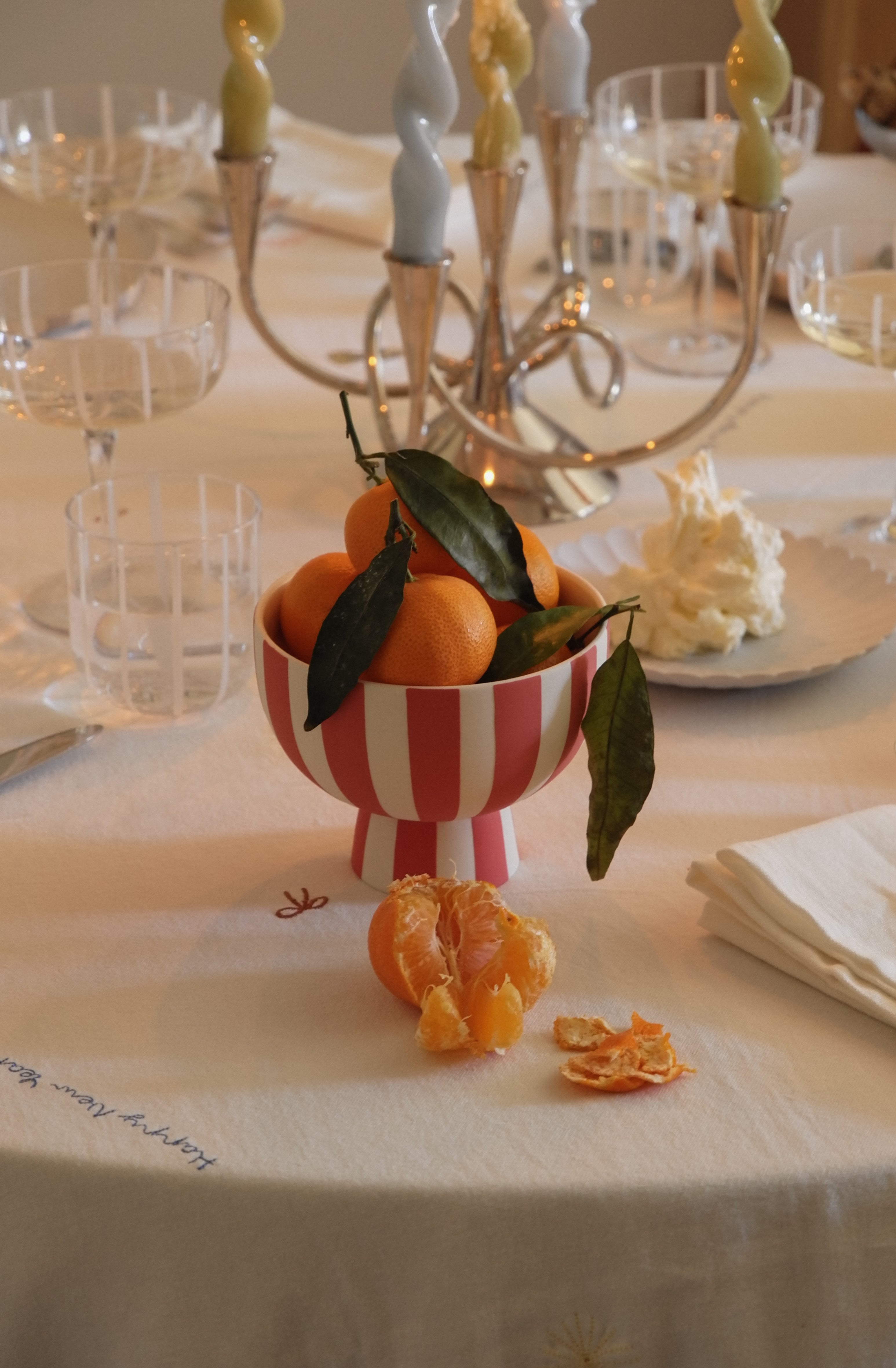 The New Year Tablecloth is adorned with delightful illustrations, perfect for your festive table setting. Elevate your New Year gatherings with this charming and practical addition, adding a whimsical flair to your celebrations.