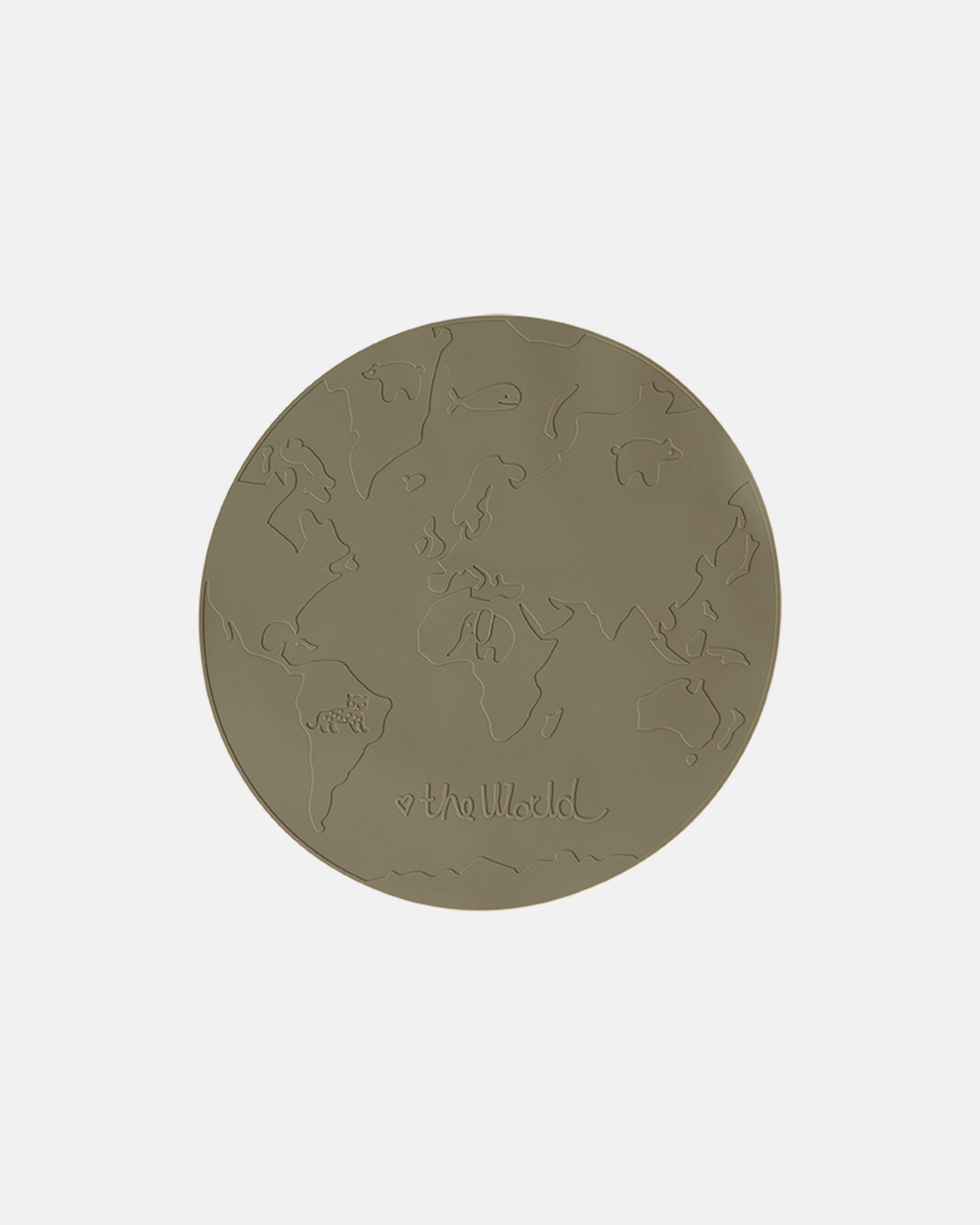 The World Placemat in olive illustrates the whole world with wild animals. The placemat is made of 100% silicone, which is a durable material that is easy to clean. The placemat is non-slip, which means that it lays well on the table.Suitable for meals or in the children's room as a base for creative activities – the child will truly love it. Style no. M107141 Color: Olive Material: 100% Silicone Dimensions: Ø39 x H0,2 cm